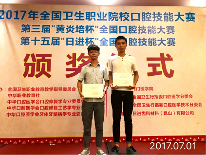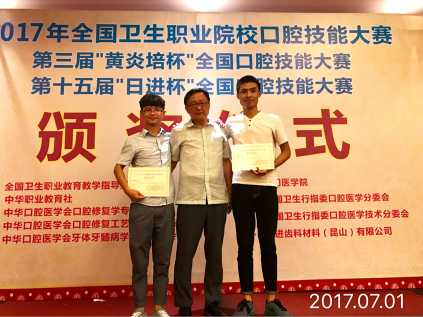 2017年全国卫生职业院校口腔技能大赛、第三届“黄炎培杯”全国口腔技能大赛、第十五届“日进杯”全国口腔技能大赛于2017年7月1日于厦门医学院隆重举行。本次大赛是由全国卫生职业教育教学指导委员会等相关专业委员会共同组织举办,共有63所学校参加比赛,其中我校参加的雕牙排牙组比赛共有110名学生参加。