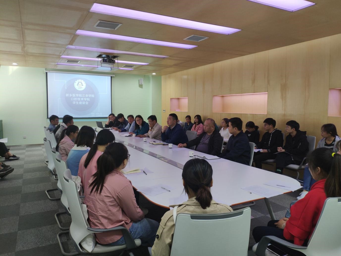 参加此次座谈会的有口腔技术学院副院长张紫阳、杨玉润,系主任崔锡淳、口腔技术学院相关任课老师以及16级、17级、18级口腔技术专业学生代表。