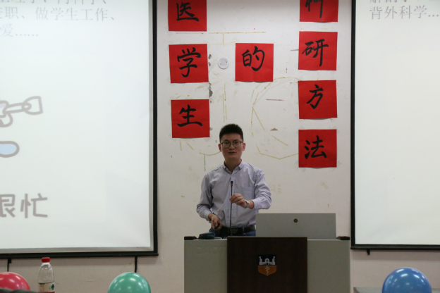 随后,在教学楼D1教室李强博士为500余名医学生作 “浅谈医学生的科研方法论”专题讲座。他从“为什么做科研”、“做什么样的科研”、“如何做科研”三方面和同学们进行了交流。李强博士从专业和科研之间的关系入手,告诉学生们真正的医学高手一定是临床医师中的顶级科学家,科学家中的顶尖临床医师,以此来说明科研的重要性;他从“新”、“深”、“真”三方面告诉学生们究竟做什么样的科研;从“如何进行科研选题、如何查找文献并获取全文、如何独立做实验、如何进行科研论文的写作、如何选刊、投稿”五方面呈现了科研活动完整的步骤,使在座的学生徜徉于科研的世界中。同时,他以自己的科研经历告诉每一名学生,作为一名医学生,不仅要学好专业知识,更要树立科研创新意识,培养科研创新能力,这样才能在未来走得更远、飞得更高。