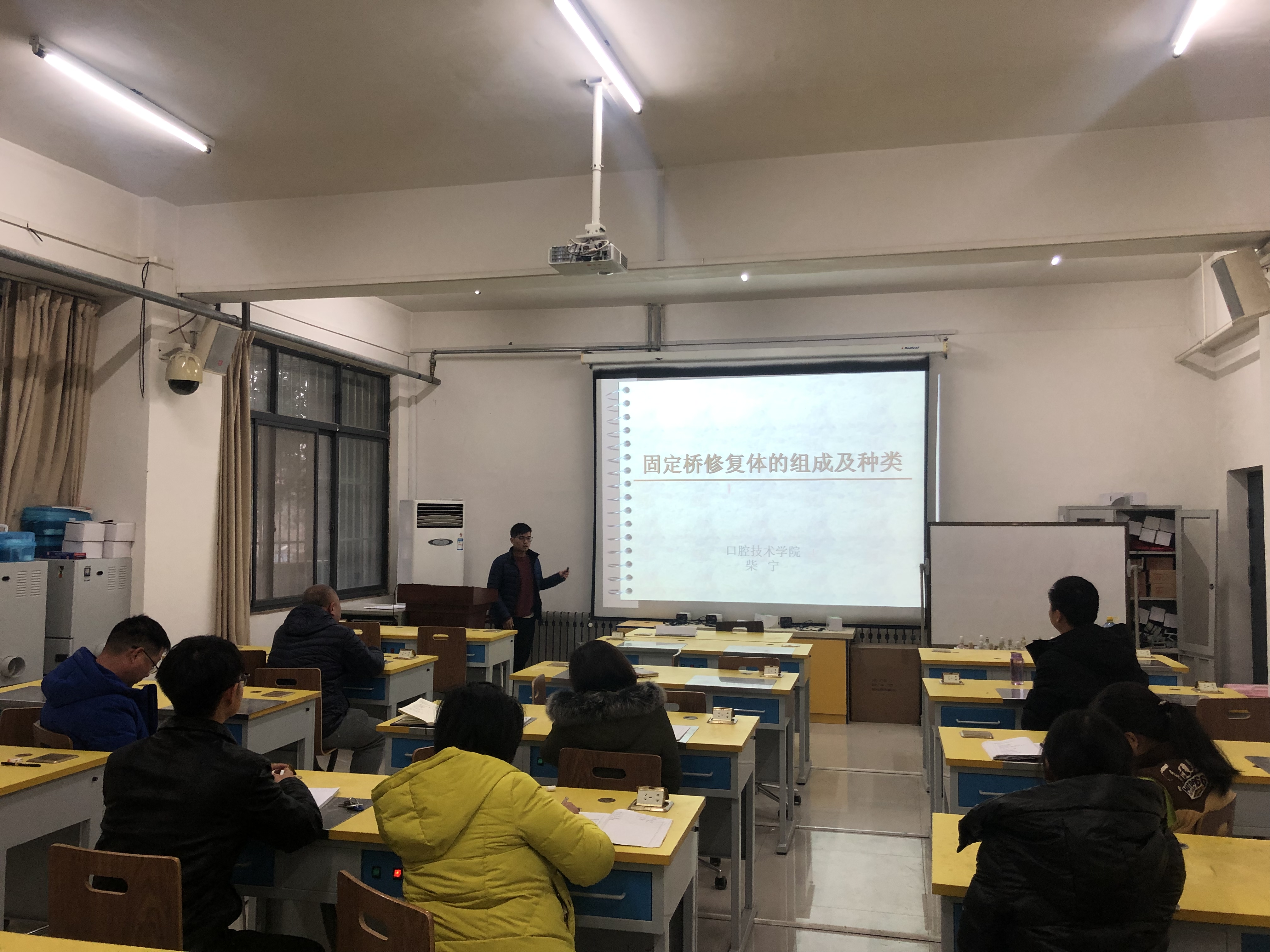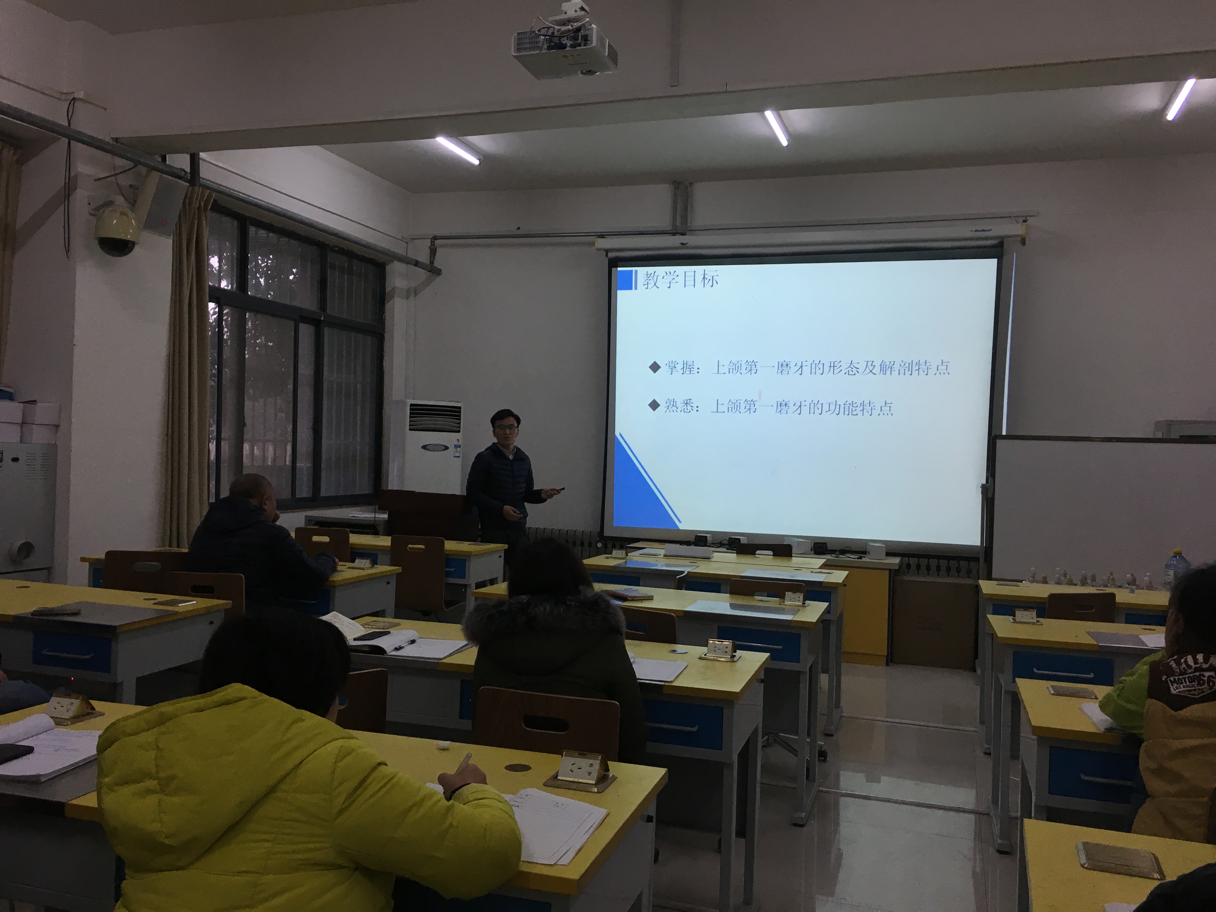 12月10日下午,口腔技术学院新进教师预试讲活动在基础楼B116进行。活动由副院长张紫阳主持,我院全体教师参加。