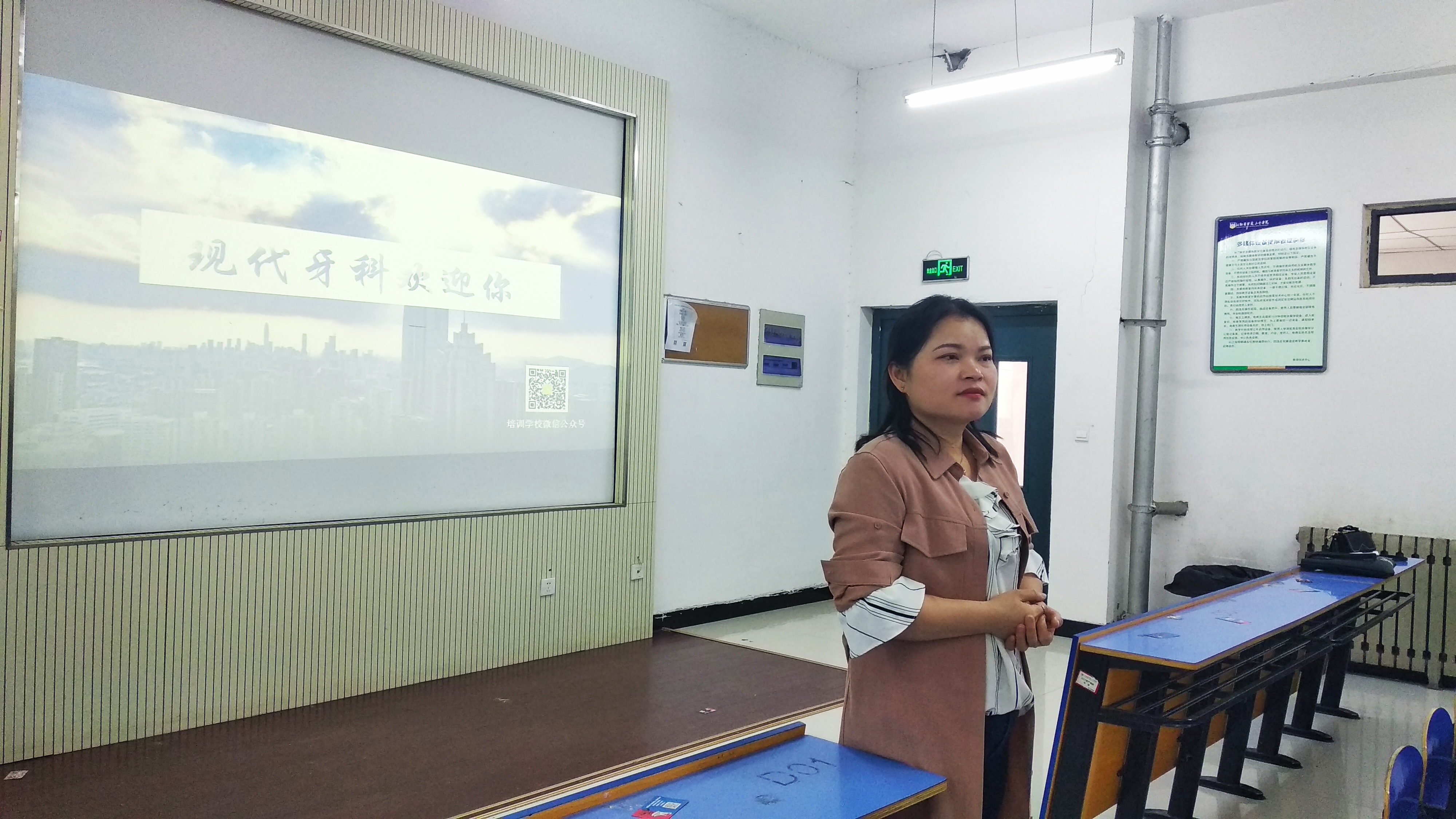 首先,在张紫阳的陪同下,曹晓婷一行参观了我校图书馆,对口腔医学技术专业参考书籍做初步了解。然后对我院实训中心,各理实一体专业教室进行了参观考查,在张紫阳的介绍下,曹晓婷一行对我院相关办学条件有了基本认识,并对实训中心和实验室的建设风格及实用性提出好评。俗话说“工欲善其事,必先利其器”,先进的实训设备和专业的老师必将为口腔技术培养更多优秀人才。随后,一行人来到谨学楼B301,与同学们面对面交流,其中14级毕业生郑梨莎学姐通过ppt向同学们具体介绍了牙科集团基本情况并分享实习经验。同学们踊跃提问,现场气氛一路飙升。我院也通过此次交谈对口腔技术企业对人才的需求情况有了更进一步的了解。曹晓婷高度赞扬我校近年来在社会所赢得的良好口碑,也表示现代牙科集团同样迫切希望与我院开展校企对接,实现企业需要什么类型人才,学校就能培养什么类型人才,学校培养出一部分人才,企业就能接收一部分人才的双赢局面。