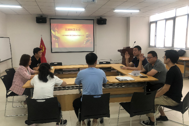 5月8日,口腔技术学院党支部所有教职工在医工实训中心五楼召开2019年度上半年党支部党员发展大会。会议由张紫阳主持。