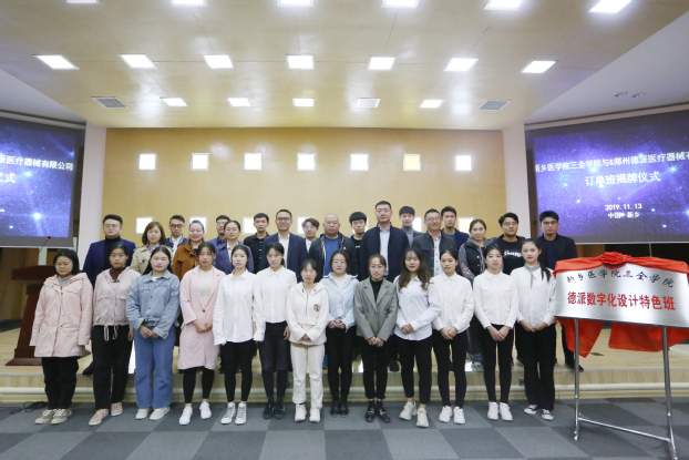张紫阳表示,郑州德派医疗器械有限公司是我校的重点合作单位,德派数字化设计订单班的开设,是口腔义齿制作加工行业转型升级和健康发展的需要,也是落实立德树人,培养应用型人才和服务区域经济发展的需要。订单班开设标志着双方的合作有了实质性进展,今后校企双方将本着“资源共享、平台共建、成果共享、互利共赢的原则,就积极探索协同育人新模式,完善应用型课程体系,强化“双师型”师资队伍,共建口腔数字化设计中心等方面深入合作,促进教育链、人才链与产业链、创新链有机对接,实现全方位全过程育人,提高人才培养质量。