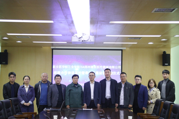 11月13日上午,我院与郑州德派医疗器械有限公司战略合作协议签约暨教学仪器设备捐赠仪式在平原校区行政楼第三会议室举行。郑州德派医疗器械有限公司总经理毛军伟、总经理助理陈聪、生产运营总监韩宝飞、人力资源部经理王平,我校教务长杜华贞出席,产教融合办公室、口腔技术学院、仁智书院等相关部门负责人参加。仪式由产教融合办公室主任张东主持。