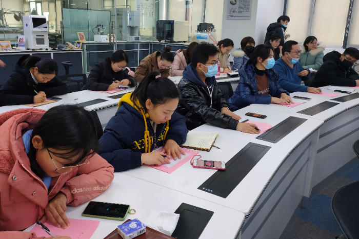 经过集体学习后,大家对会议内容感慨颇深,与此同时,积极组织开展“宪法宣誓誓词”书法大赛,进行现场书法比拼,全体教师踊跃参加,学氛围十分浓郁。