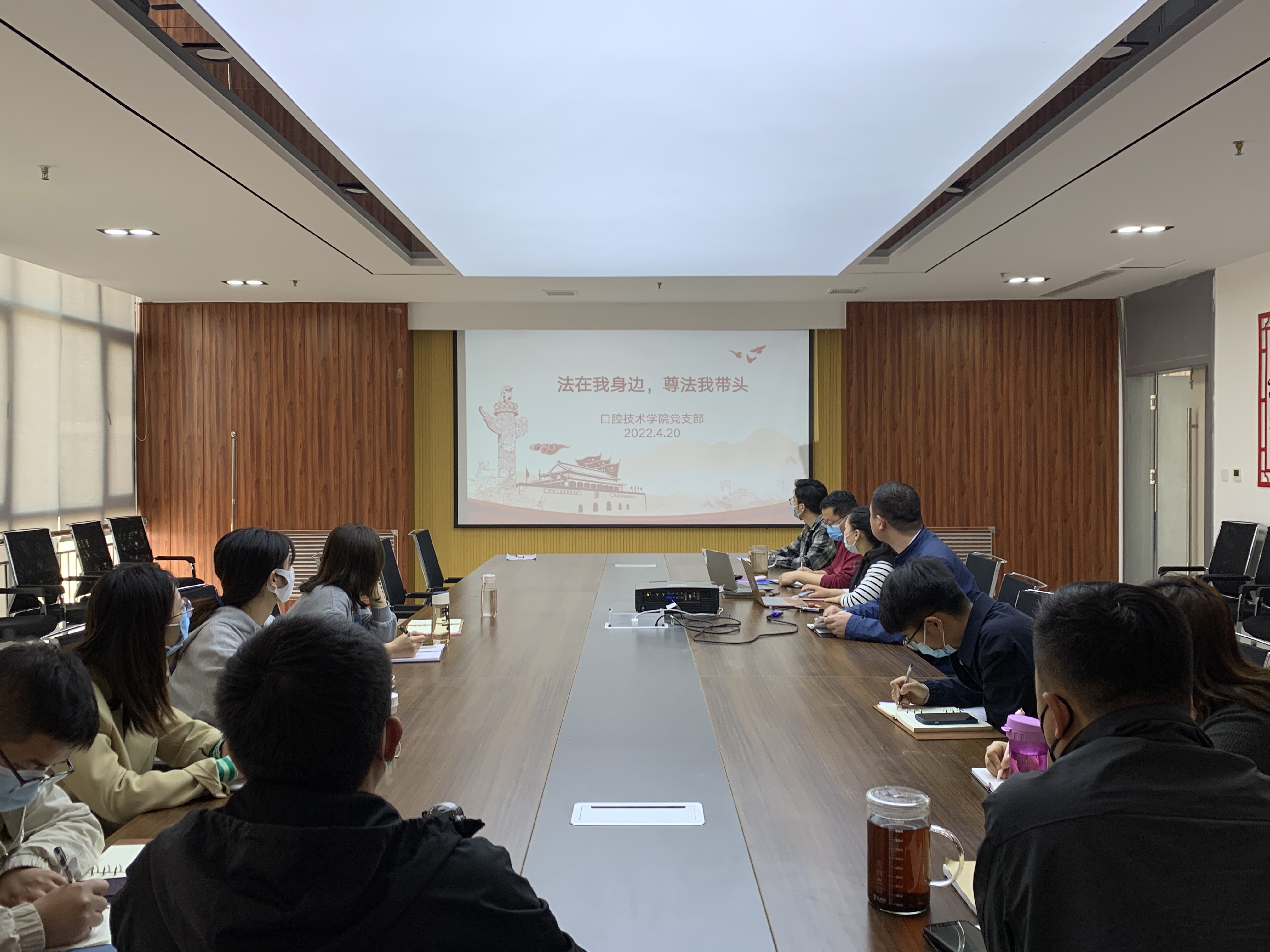 4月20日,口腔技术学院党支部开展四月份政治理论学习和主题党日活动,会议由口腔技术学院党支部副书记娄彦飞主持,口腔技术学院党支部全体党员参加。