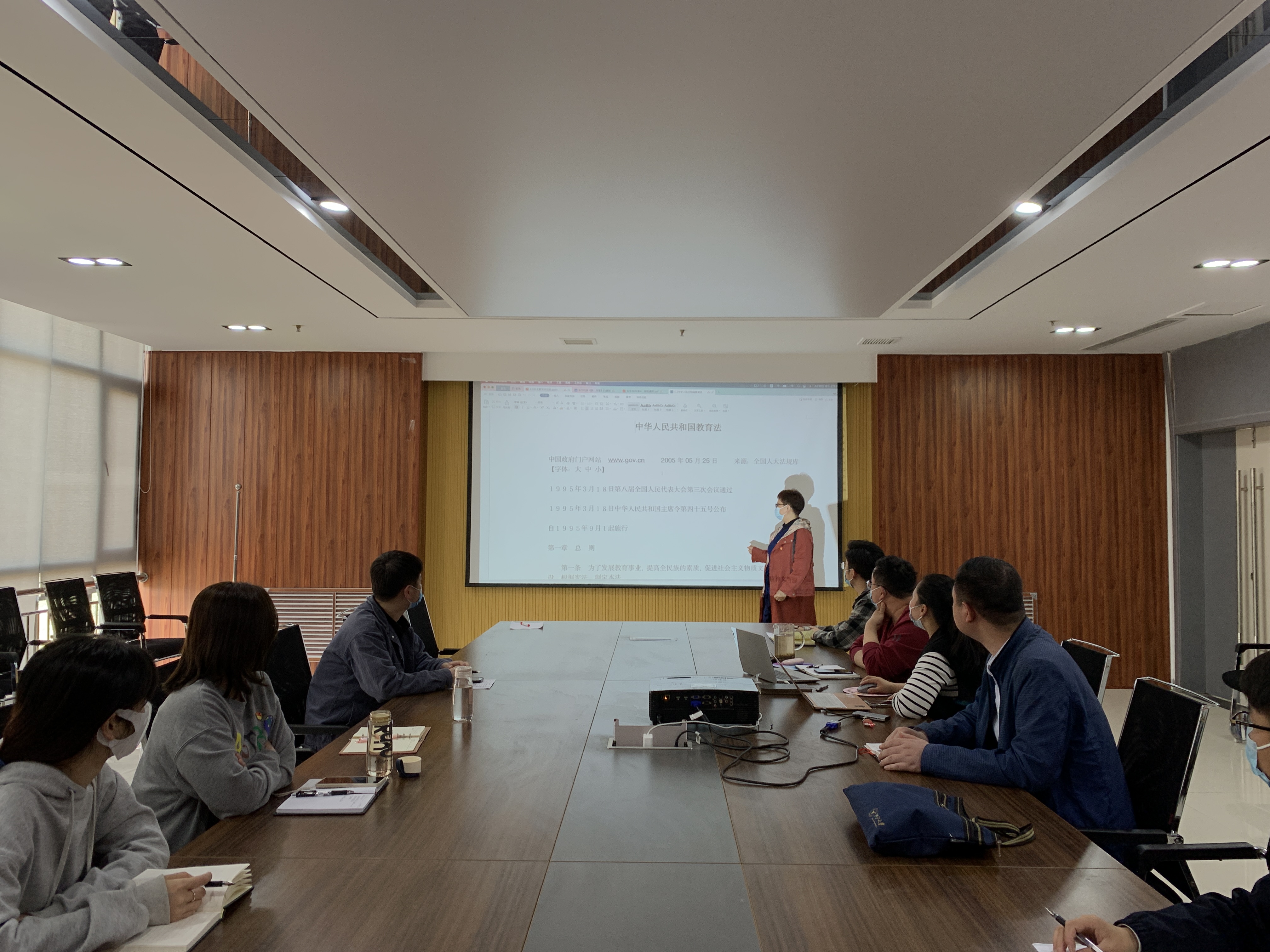 党支部书记王桂琴讲党课《中华人民共和国教育法》,王桂琴从《教育法》修订的背景和过程、修改的原则和内容、全文完整内容解读三个方面分析阐明了新《教育法》的基本要求、教育基本制度、办学体制、管理体制和法律责任等内容。全体参会人员表示要坚决贯彻党的教育方针,落实立德树人根本任务,模范履行岗位职责,不断提升育人能力和业务水平,为学校改革发展稳定作出新的更大的贡献。