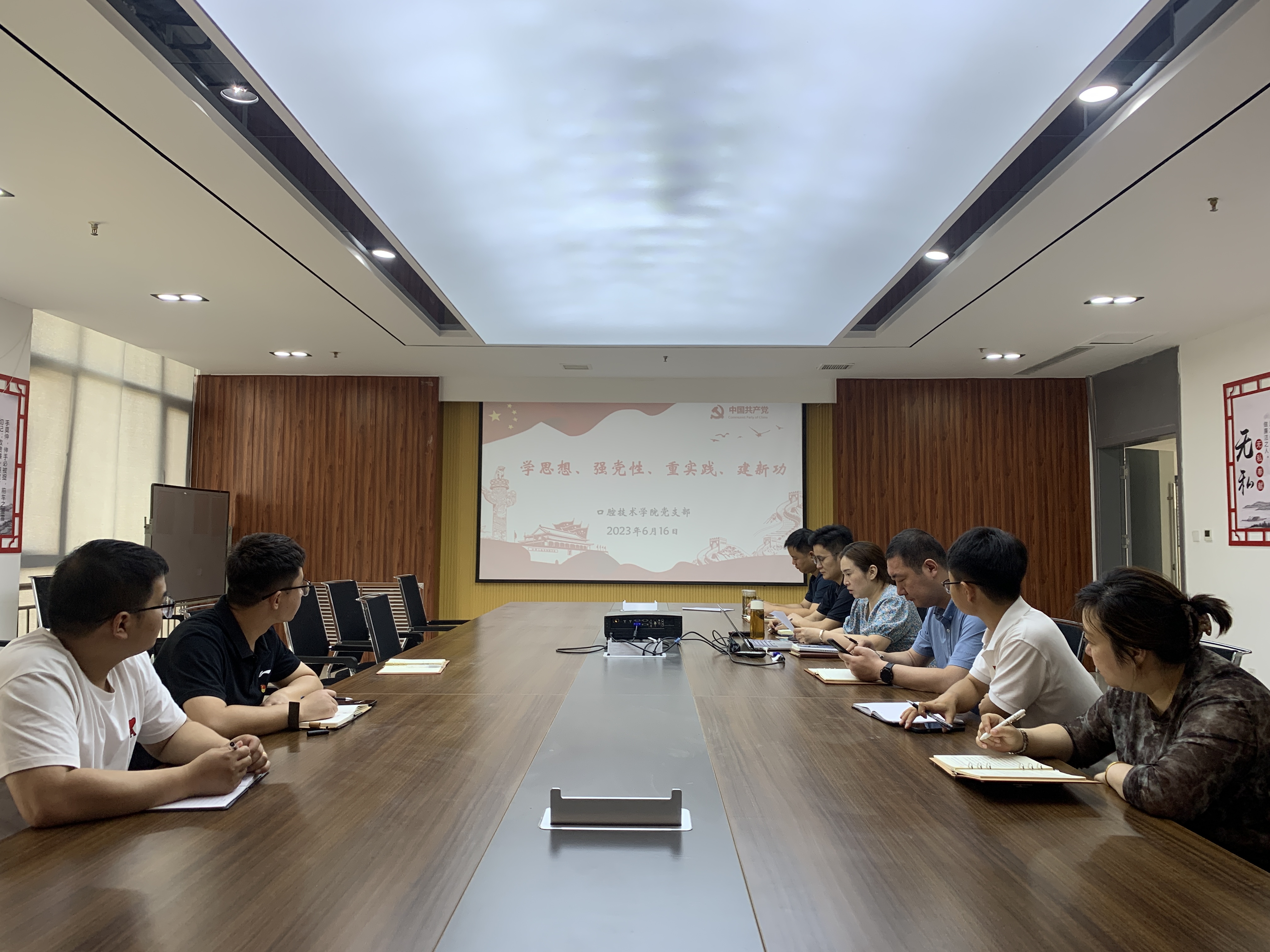 首先通报了党员到会及本月党费交纳情况。会议前期全体党员深入自行学习了党的二十大报告、党章、《习近平著作选读》等内容,支部青年党员参加行业学院党总支组织开展的青年党员理论读书会,每日进行党课微播报,传递理论思想,提升党性。接着韩正华进带领全体党员重温入党誓词庆“七一”,提醒大家虽然已经加入了中国共产党,但并不意味着就完成了人生的“大考”,只有时刻牢记自己的誓言,才能坚定理想信念,不忘初心,继续前进。