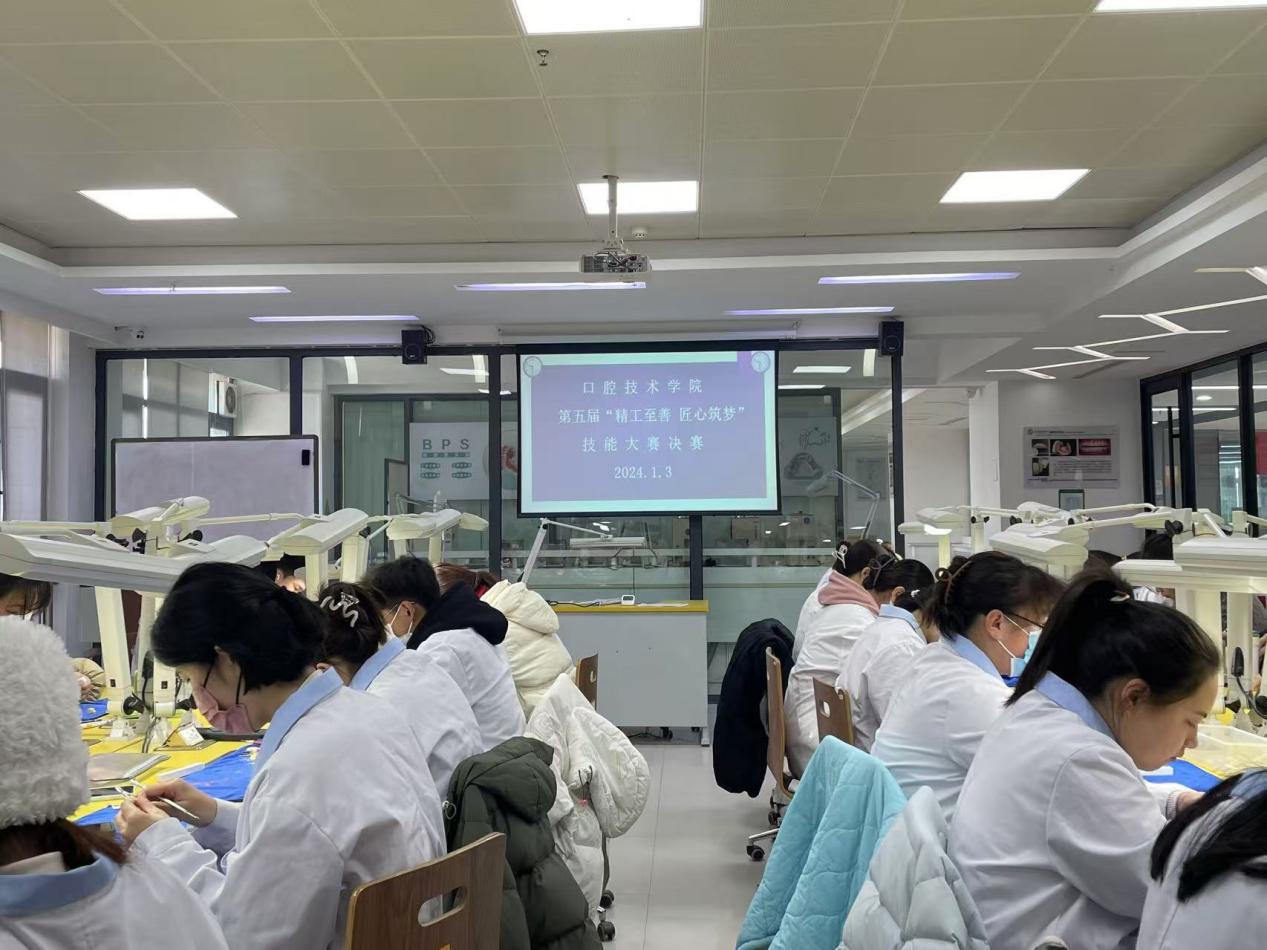 2024年1月3日,口腔技术学院在医工楼实训中心举办第五届口腔技能大赛决赛。本次技能大赛主题为“精工至善,匠心筑梦”,共设有4个赛项,分别为排牙组、雕牙组、CAD设计组、绘画组。其中排牙组、雕牙组、CAD设计组为3个现场赛项,绘画组为非现场赛项,共有176名学生踊跃报名参加。
