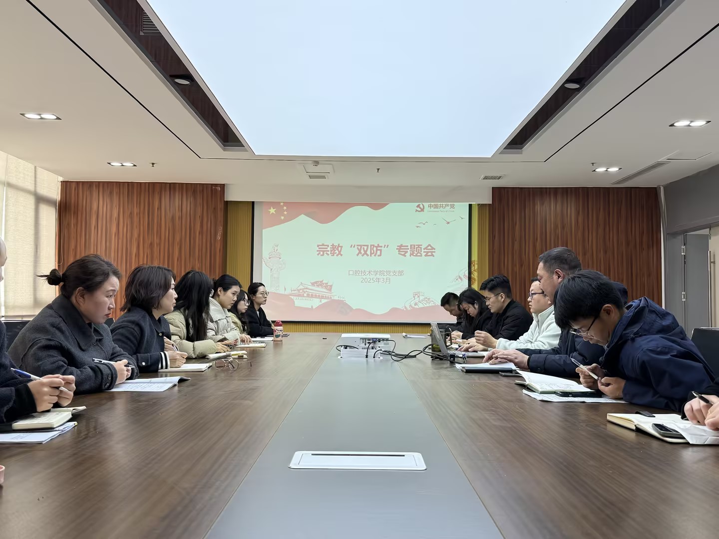 我院党支部于3月7日在医工楼四楼会议室召开上半年民族宗教“双防”工作部署会议,由党支部副书记韩正华主持,口腔技术学院党支部全体党员参加。本次专题会主要围殴深入贯彻落实党的民族宗教政策,加强校园...