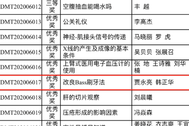 新乡医学院三全学院第十一届教育教学信息化大赛按照预定方案和规定程序,经各教学单位选拔推荐、专家评审、院务会审定,共评选出各类奖项62项,其中口腔技术学院贾永亮老师的作品《改良Bass刷牙法》荣获教...